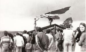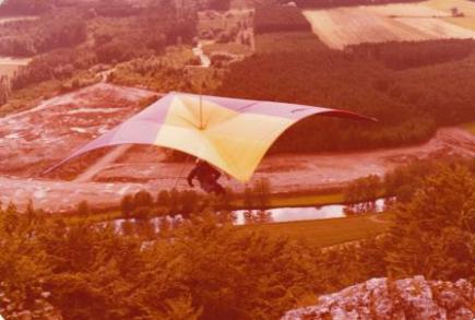 Mitte der 70er kauft sich mein Vater - mittlerweile über 50 Jahre alt geworden - einen Rogallo Drachen und beginnt autodidakt das Drachenfliegen. Da sich genügend gleichgesinnte finden ist der 1. Oberpfälzer Drachenfliegerklub Steinerbrückel daraus erwachsen. Hier Fotos der Flüge in Steinerbrückel bei Nittendorf (westlich von Regensburg). Ab 1980 war dann ich selbst mit dem Cloud 2 in Steinerbrückel in der Luft.